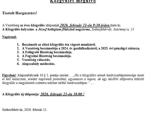 Tisztelt Horgásztárs! A Vezetőség az éves közgyűlés időpon...