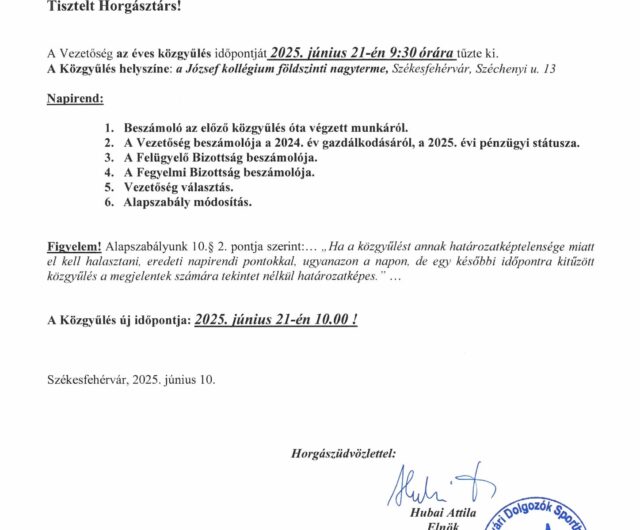 • június 12, 2025Közgyűlés meghívó – 2025. június 21.